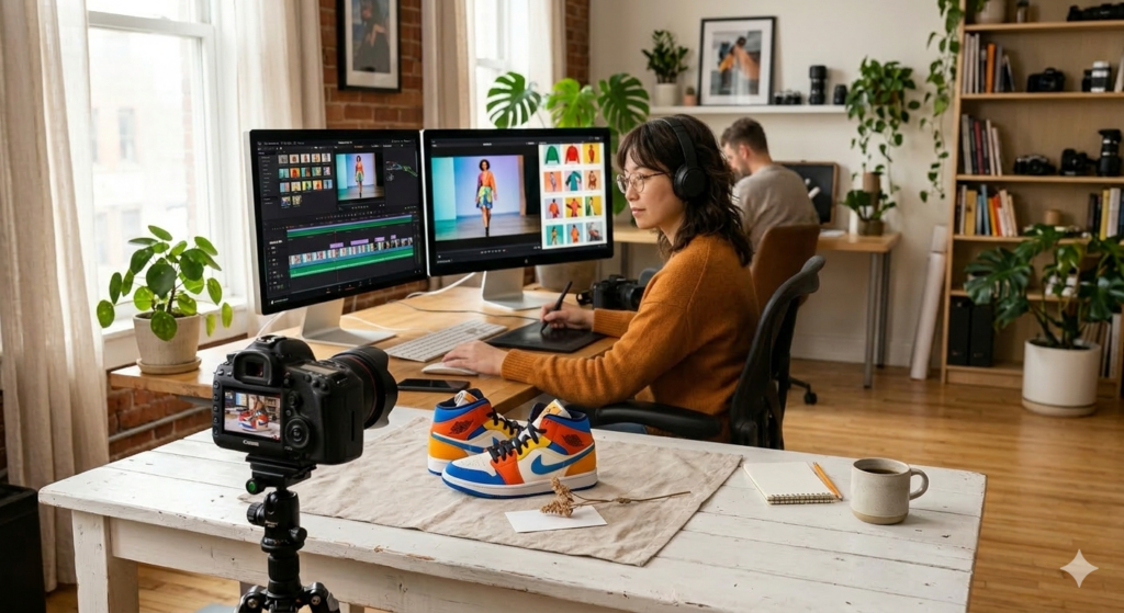 スニーカーやアパレル類の写真撮影